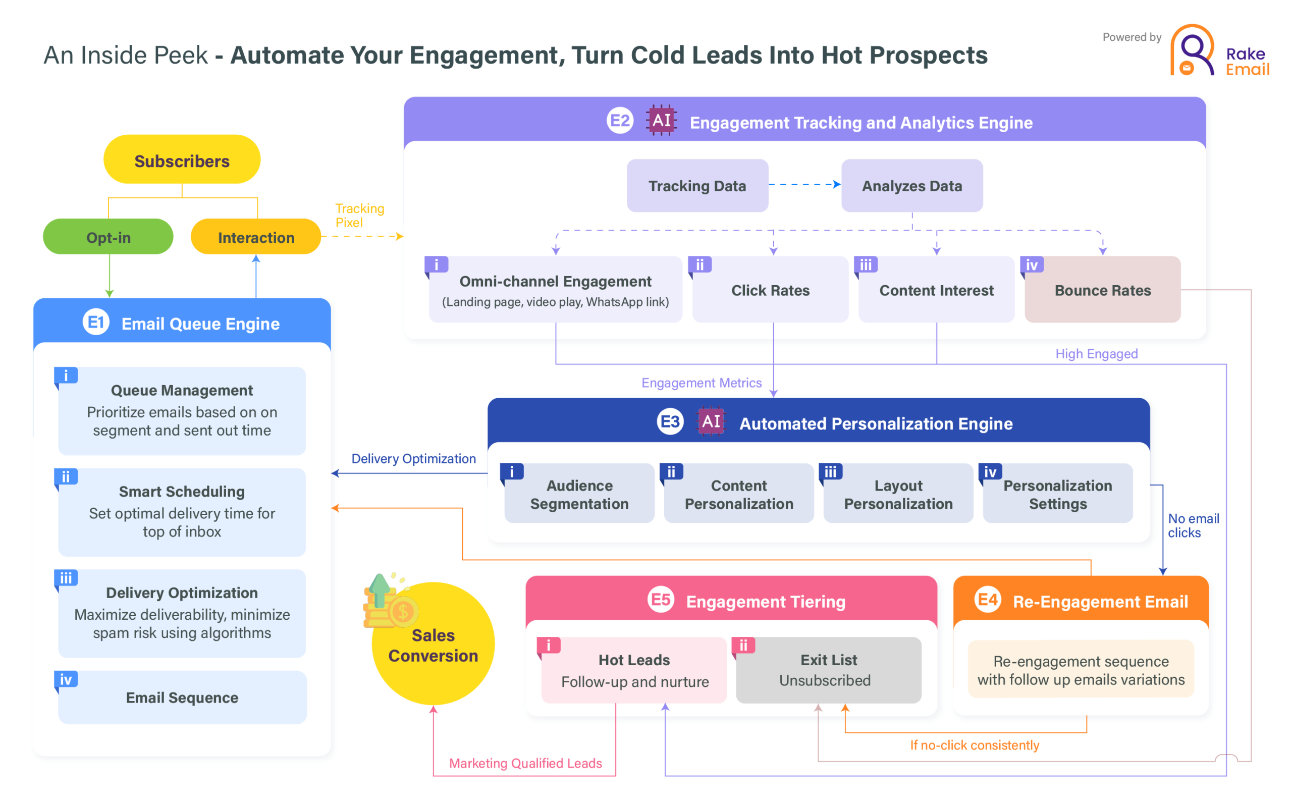 Yes. Rake.Email works for any form of customer communication — from automated onboarding sequences and retention campaigns to product updates and personalized offers. It’s designed to adapt to your marketing flow, letting you build smart, responsive email journeys that keep your audience engaged at every stage.